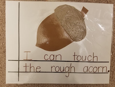 Page 5 - "Touch": Acorn template; Brown construction paper; Glue; Sand sprinkled on glue